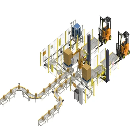The stacking robot production line used for boxed products can stack boxed products in a stable arrangement, and contains multiple palletizing process packages to better coordinate with the